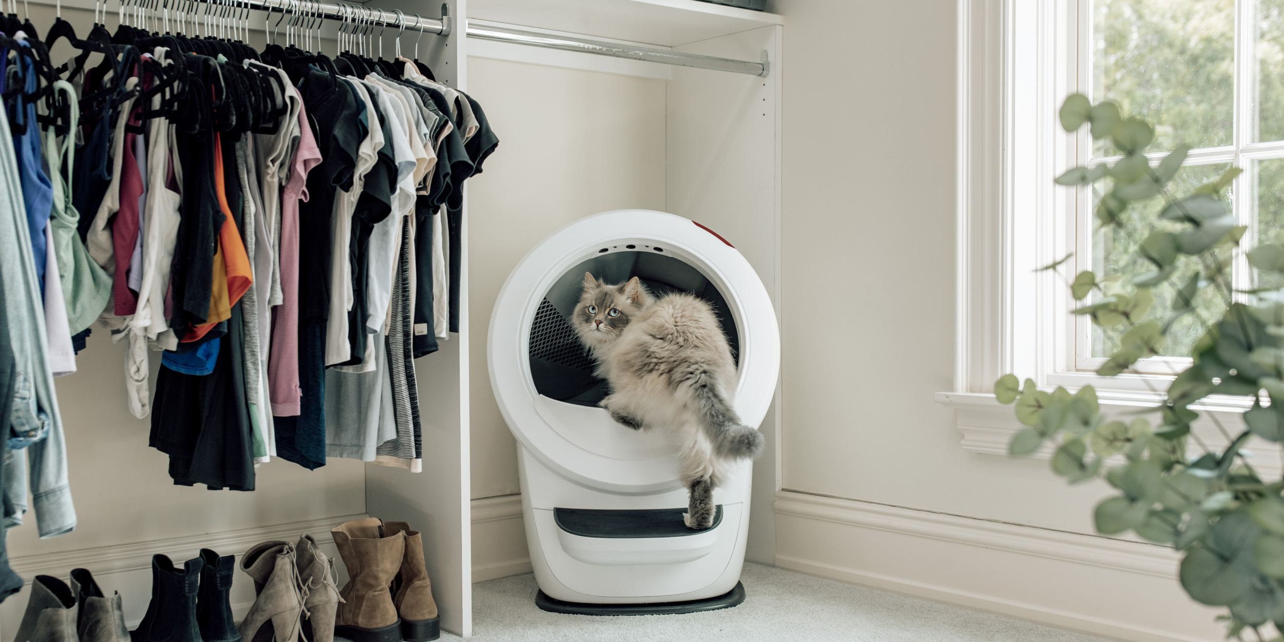 Litter-Robot 4 on umbes öökapi suurune ja võtab sama ruumi nagu suur liivakast.
